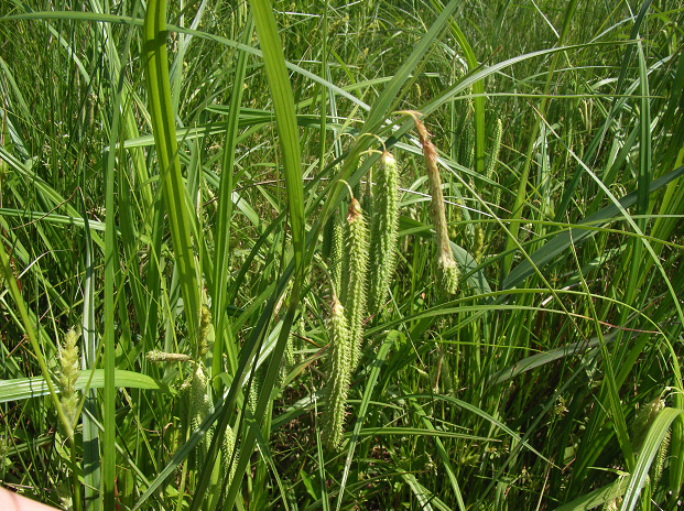 斜めに垂れ下がる花茎が優しい雰囲気を醸し出しています。見た目も面白いですが、根元近くの三角の茎を触った感じも面白い。ナルコは田んぼから鳥を追い払うための音の出る道具のことだそうです。