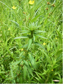 北側湿地の中央の新しい池に大きなヒレタゴボウに混じって可憐な花を咲かせております。右写真の奥の大きな花がヒレタゴボウ(外来種)で、手前の小さい花がチョウジタデ(在来種)です。