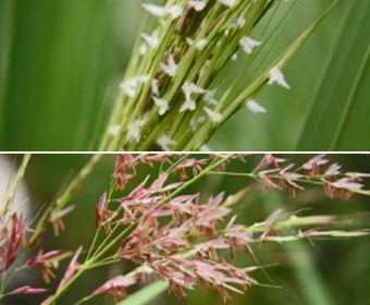 ミクリ池付近で立ち止まり、じっくりと花を観察しました。穂が出始めのものは白いめしべが目立ち(写真上)、穂がしっかりと出ると赤いおしべが主張していました(写真下)。公園内では国道側湿地の木道沿いで見られ、上富士川にも生育しています。